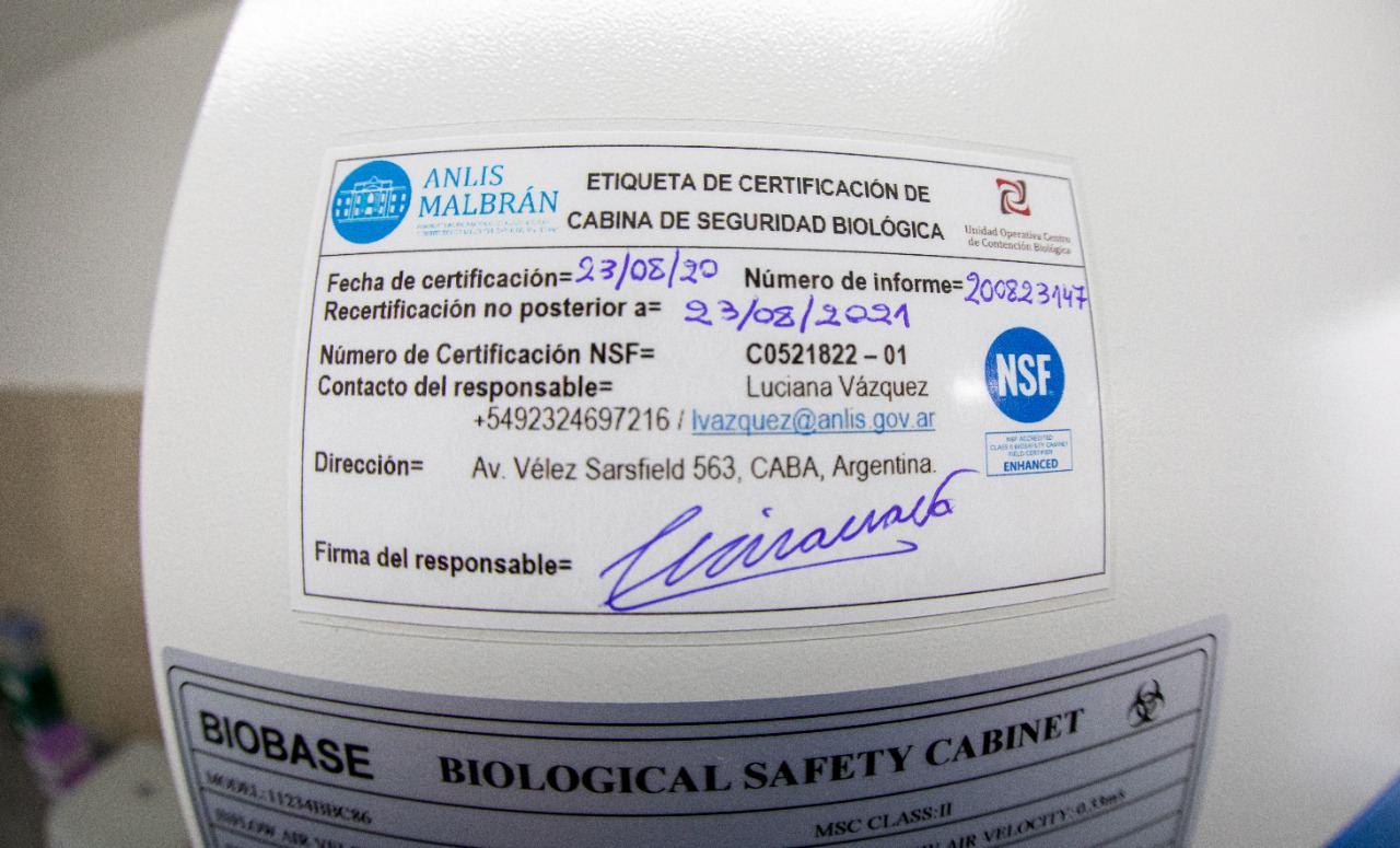 Los técnicos del Instituto Malbrán, arribados hoy a la ciudad, realizaron la certificación de la cabina de bioseguridad del Laboratorio...